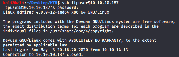 weirdly ftp creds also worked for SSH but connection gets closed just after login, so not useful