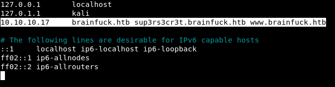 | Subject Alternative Name: DNS:www.brainfuck.htb, DNS:sup3rs3cr3t.brainfuck.htb