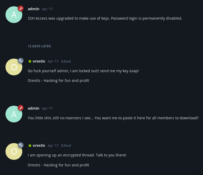 There are 3 interesting file in the home directory of orestis