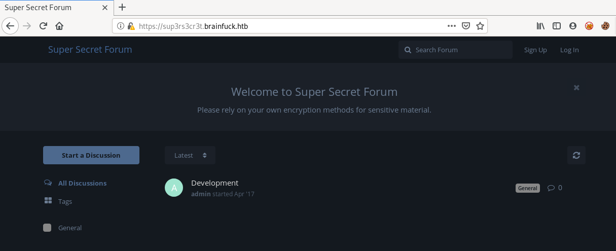 we just get a nginx welcome page on 10.10.10.17, so lets visit https://brainfuck.htb and https://www.brainfuck.htb