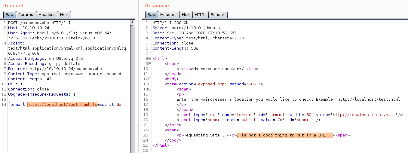 so I tried basic command injection by adding semicolon(;), ampersand(&) and many other symbols and keywords