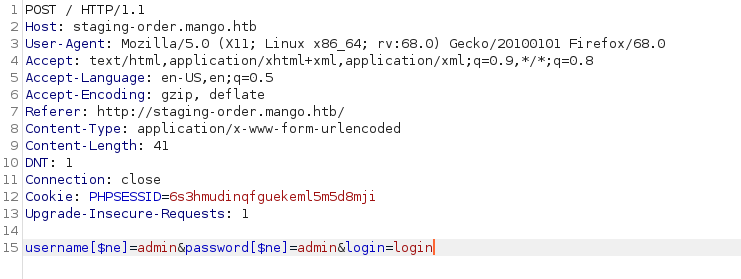 the name of the box suggests that its using MongoDB so we can try some NoSQL injection on the login page