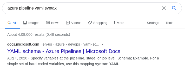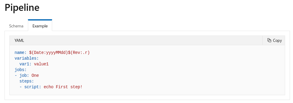 To find the correct syntax of YAML file, I googled azure pipeline yaml syntax