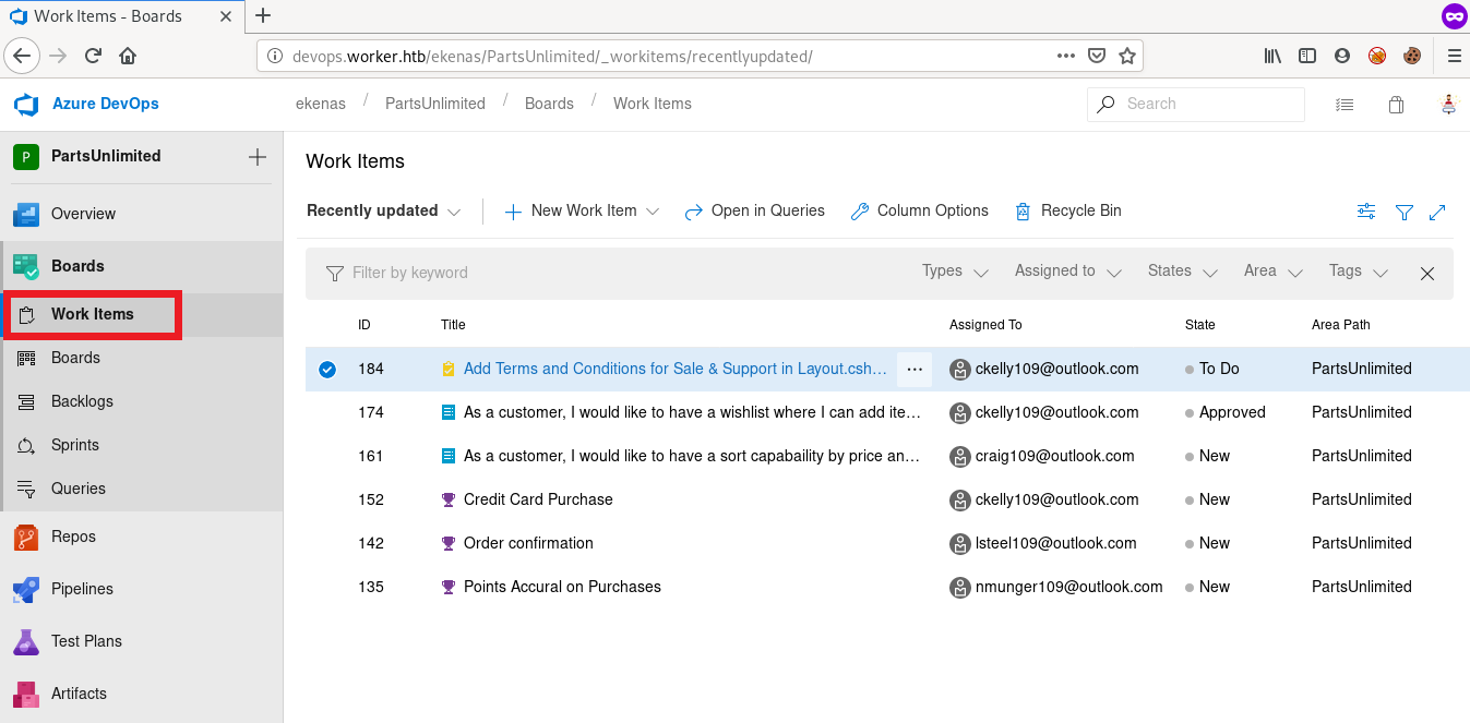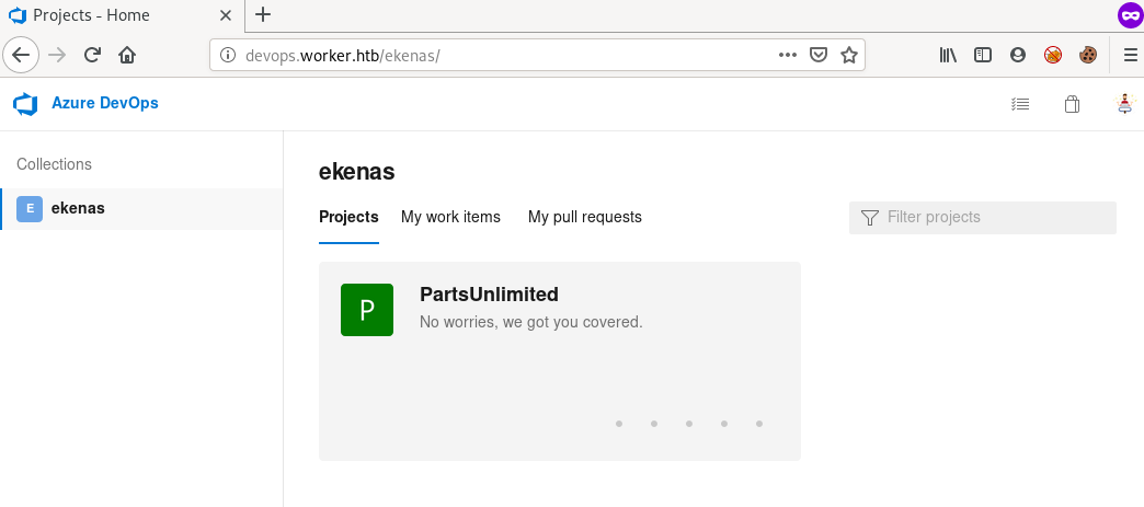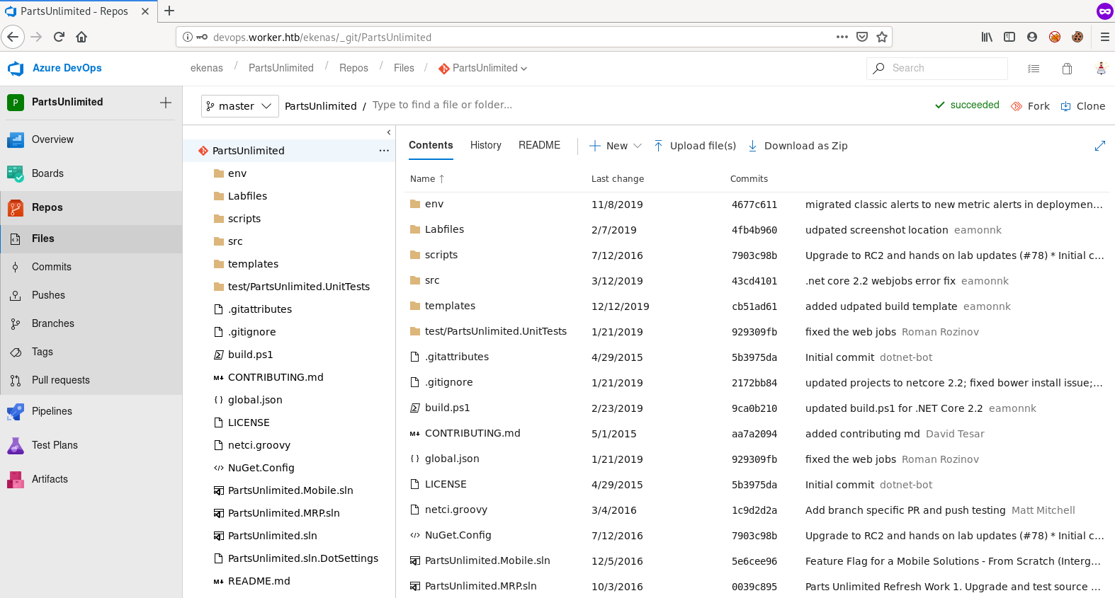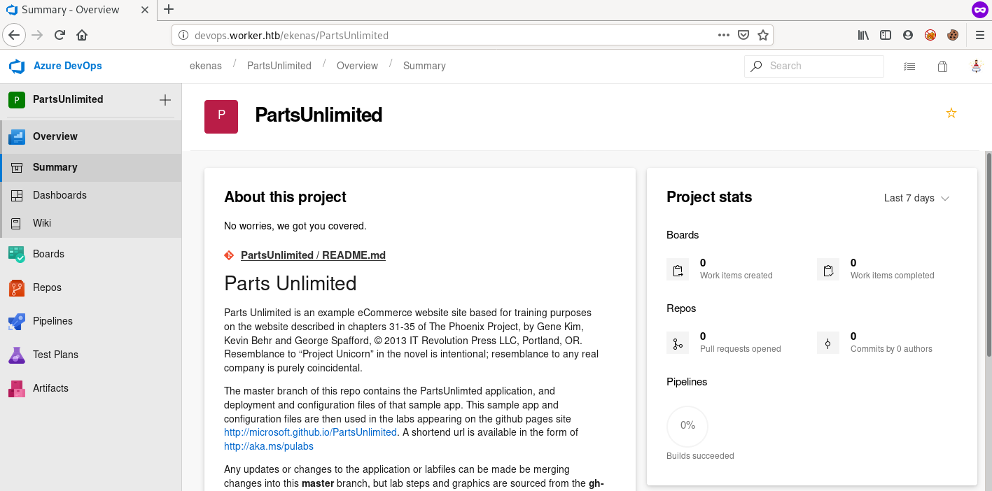 but logging into the devops site as robisl revealed a new project named PartsUnlimited