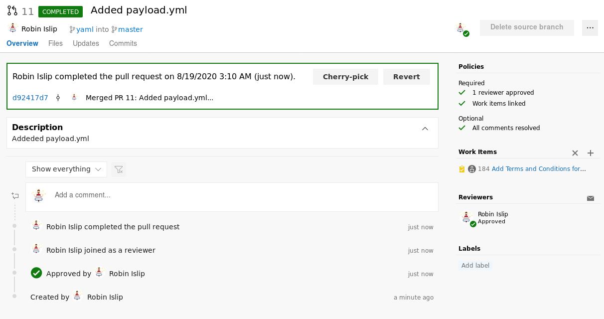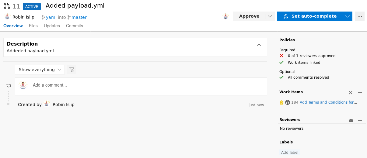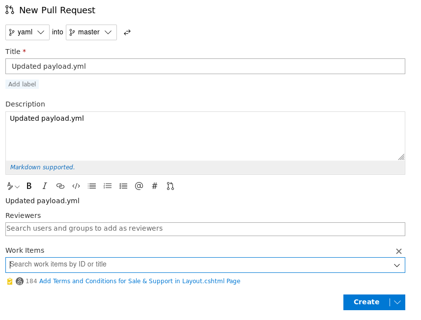 We need to create a new branch, upload this YAML file and then issue a pull request just like we did before